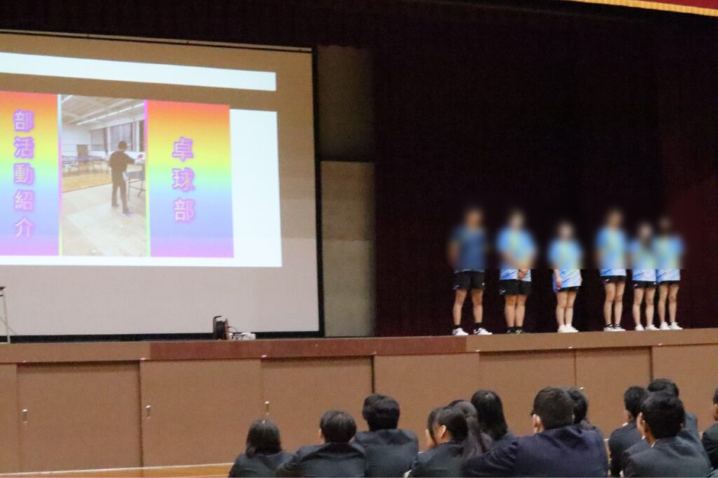 始業式のあとに部活動紹介が行われました。1年生のみなさん、どの部活に登録するかもう決めましたか?