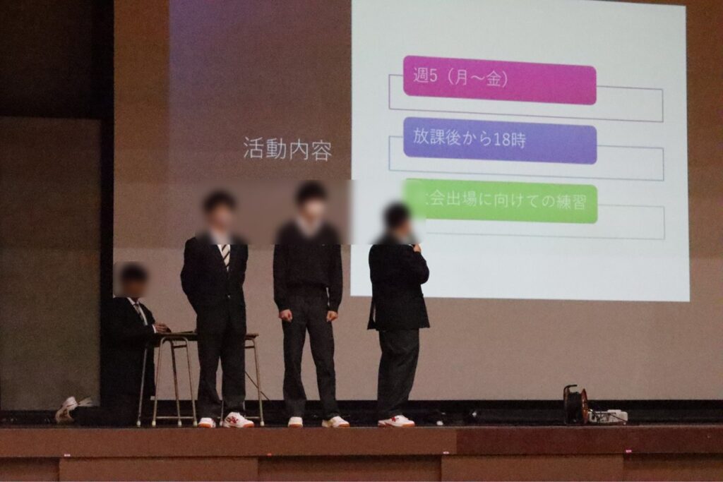 どの部活動も、先輩たちがしっかり準備をして部活動紹介をしてくれました。